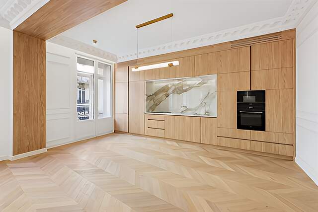L’immeuble offre des parties communes restaurées, un superbe escalier en bois d’époque, un futur sol en marbre, un ascenseur et un service de conciergerie.