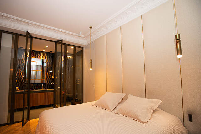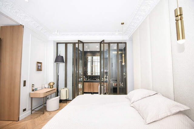 Élégance et beauté. Toutes les dernières tendances et les prestations de haut de gamme dans ce sublime 2 pièces d'architecte de 45 m² au cœur du 15ème arrondissement, Paris.