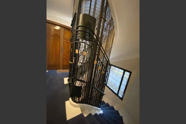 Au premier étage d'un élégant hôtel particulier de 1910 très bien entretenu.
