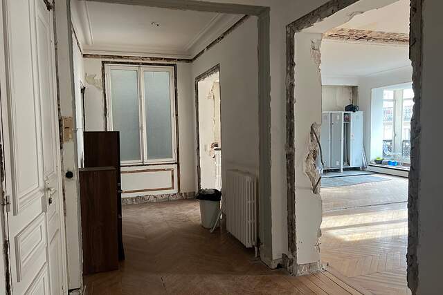 Les détails historiques - parquet, moulures et cheminées - créent une atmosphère parisienne authentique.